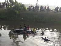 Sebuah MPV terjun ke Sungai Bondoyudo di Jember. Sang pengemudi banting setir untuk menghindari tabrakan dengan sepeda motor.